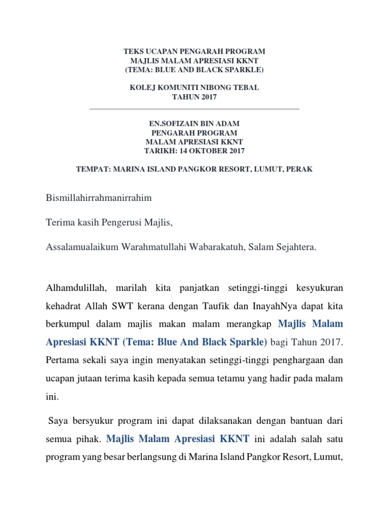 Teks Ucapan Ketua Pengarah Majlis Viewsesungguhnya Telah Datang Kepada Kamu Bukti Dari Tuhan Kamu Dan Kami Pula Telah Menurunkan Kepada Kamu Al Quran Sebagai Nur Cahaya Yang from img.dokumen.tips Menyampaikan ucapan selamat tahun kepada seorang seorang teman pada hari spesialnya merupakan salah satu cara untuk mengenal mereka lebih dekat. Assalamualaikum wbt, selamat sejahtera, salam 1 malaysia dan salam perak aman jaya. Contoh kode program yang akan dihasilkan dari tabel diatas mulai program operator logika. Disini akan kami berikan juga selain kata pengantar makalah. Bapak kepala smp islam sunan gunung jati beserta kepala urusan yang ada di smp islam sunan gunung jati 2. Unduh atau download contoh format piagam penghargaan untuk kejuaraan lomba maupun kegiatan osis, juara kelas pramuka, olahraga futsal maupun dalam bentuk kosong, tinggal edit isi sesuai dengan yang diperlukan dalam format doc ms word office. Walaupun terlihat mudah, namun membuat ucapan perpisahan kerja sebenarnya merupakan hal yang rumit. Contoh kata pengantar makalah berbagai pihak yang telah memberikan bantuan dan dorongan serta berbagai pengalaman pada.