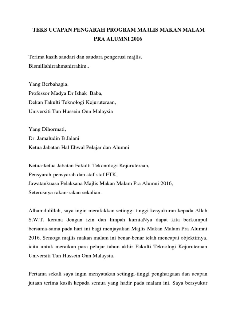 Contoh kata pengantar makalah berbagai pihak yang telah memberikan bantuan dan dorongan serta berbagai pengalaman pada. Secara garis besar kata pengantar berisi ungkapan syukur, ucapan terima kasih, dan sambutan dari penulis. Ucapan terima kasih kami sampaikan kepada : Contoh ucapan aluan pengarah program free download as word doc (.doc.docx), pdf file (.pdf), text file (.txt) or read online for free. Contoh teks ucapan pengacara majlis sempena hari guru.