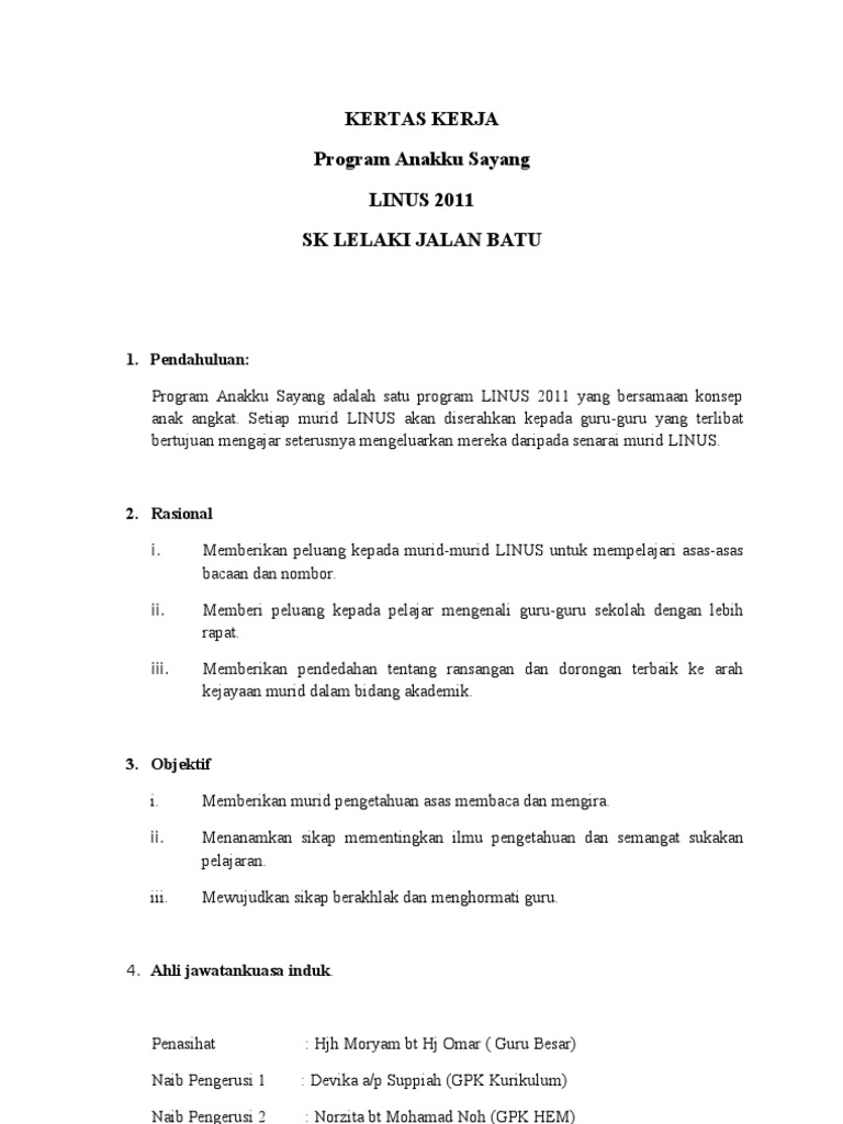 Kertas Kerja Program Linus : Kertas Kerja Program Celik Huruf / Sekolah rendah al furqan 33000 kuala kangsar masa:. Dalam kumpulan sambil memegang tali. Kertas kerja program anakku sayang linus 2013 sk lelaki jalan batu 1. .kertas kerja program erat kasih tarikh : Kertas kerja program misi antarabangsa mahasiswa fakulti ekonomi dan muamalat cadangan pertandingan video game tempat tarikh hari : Published with reusable license by.