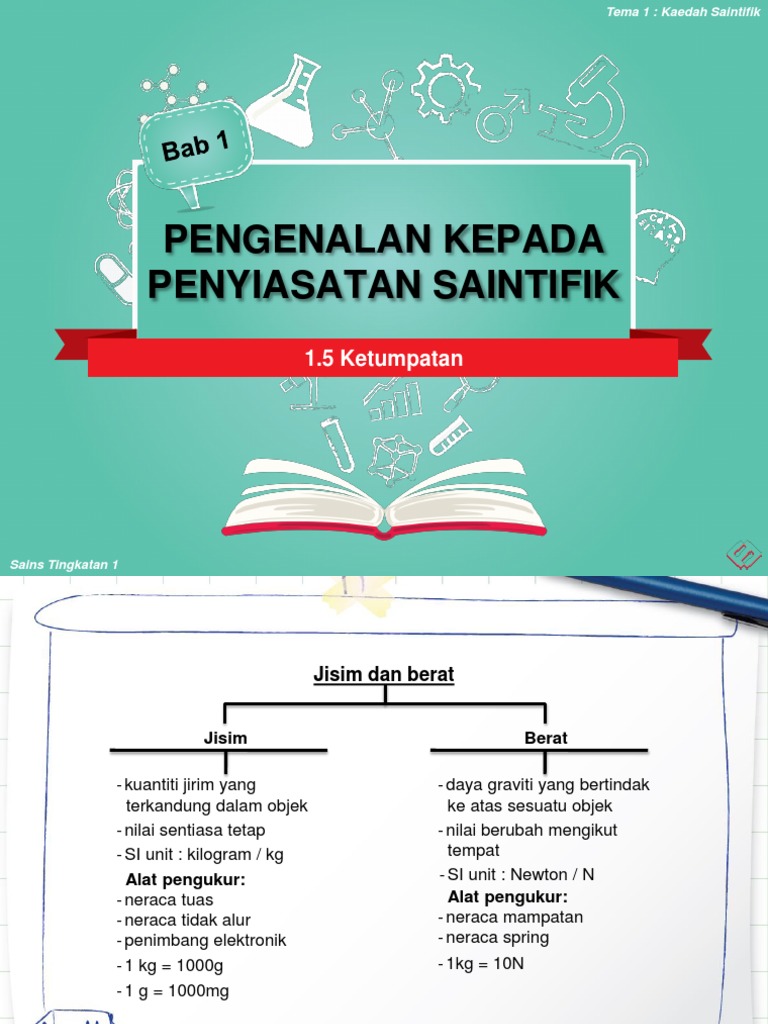Please copy and paste this embed script to where you want to embed. Soalan pentaksiran dan modul sains kssm tingkatan 1 + jawapan. Unit bagi ketumpatan ialah kg/m3 atau g/cm3. Murid diberikan tugasan untuk menginovasikan makanan atau minuman berasaskan konsep ketumpatan. Perincian bab di bawah disusun mengikut isi kandungan buku teks sains form 1 untuk rujukan anda penggunaan alat pengukur, kejituan, kepersisan, kepekaan dan ralat.