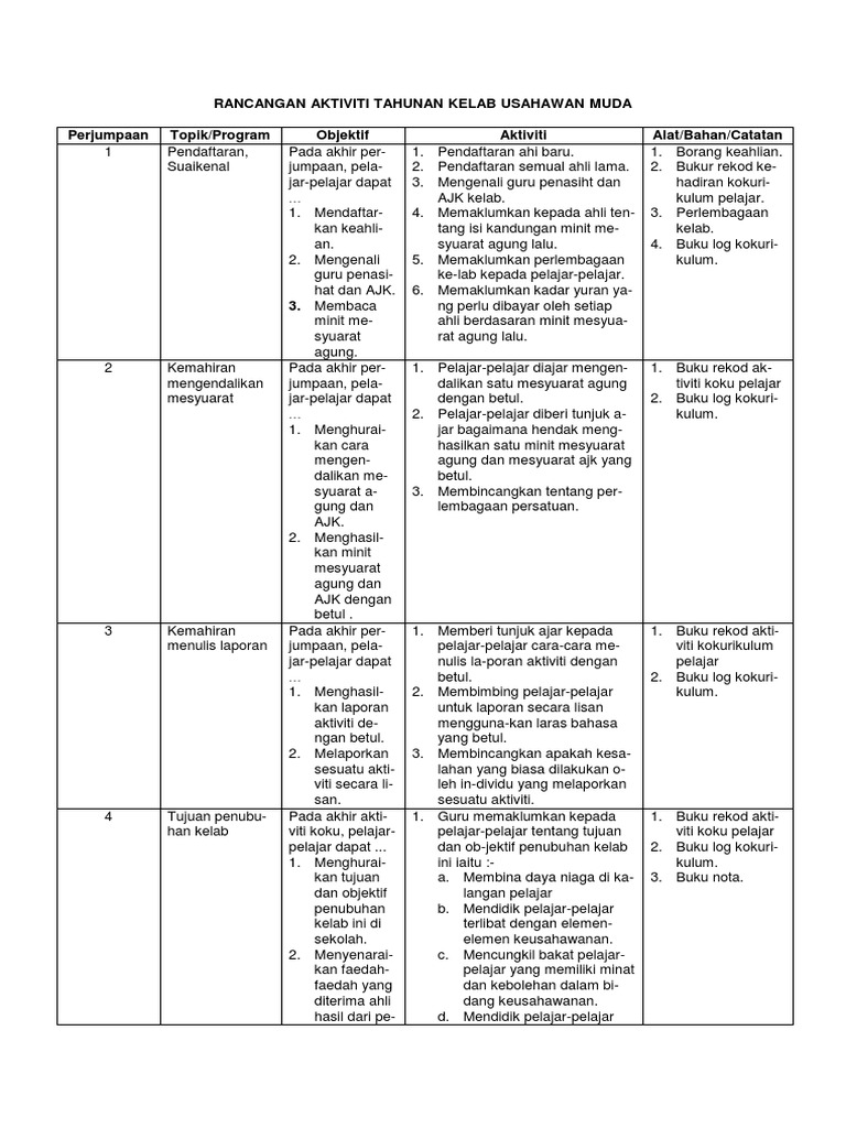 Perancangan Aktiviti Tahunan Kelab Usahawan Muda 2019 ... from pdfcoffee.com Maybe you would like to learn more about one of these? Check spelling or type a new query. Rancangan tahunan kelab doktor muda. We did not find results for:
